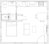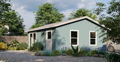 Our studio homes are the perfect option where the build-able area on the lot is limited. These detached buildings on your lot provide for open, flexible living space with a kitchen and bathroom.Â