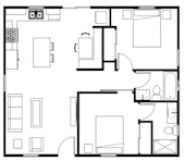 Our two bedroom plans range from 700 sf to 1,000 sf.Â