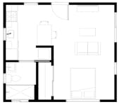 This floor plan is a great fit for a variety of uses such as a small home, guest house, work space, pool house or recreation room.Â